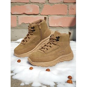 Botas de senderismo para mujer, color marrón claro: botines con cremallera lateral y suela antideslizante, ideales para actividades al aire libre y uso casual.