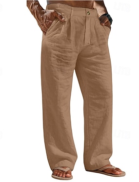 Hombre Pantalones de lino Pantalones Pantalones de verano Pantalones anchos Pantalones de playa Bolsillo Pierna recta Color sólido Comodidad Transpirable Longitud total Casual Diario Exterior
