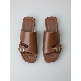 "Sandalias planas de piel sintética con aberturas marrones para mujer con correa ajustable: zapatos casuales de verano para uso diario y vacaciones"