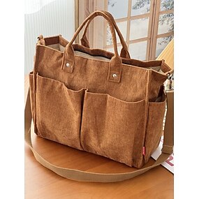 Bolso de mano de pana para mujer, bolso de hombro vintage informal de gran capacidad, bolso ligero para compras, viajes y trabajo.