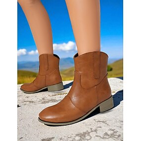 Botines vaqueros marrones para mujer: zapatos retro de piel sintética estilo vaquero para looks de otoño y festivales.