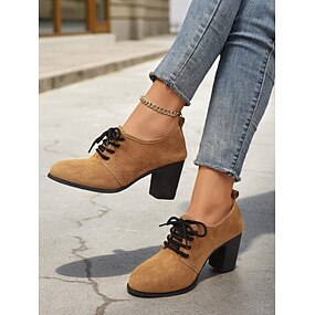 Zapatos oxford negros de mujer con cordones y tacón bajo cuadrado: un estilo clásico e informal, perfectos para la oficina, salidas diarias y looks de fin de semana.