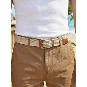 Cinturón elástico trenzado para hombre con ribete de piel sintética, cinturón informal ajustable tejido en varios colores para uso diario, vacaciones en la playa, viajes y estilo resort.