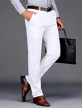 Hombre pantalones de traje Pantalones Chinos Pantalones casuales Pierna recta Plano Comodidad Transpirable Longitud total Boda Moda Casual Blanco Caqui Microelástico