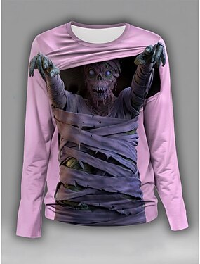 Camiseta de mujer Calaveras Gráfica Esqueleto Moda Vintage Elegante Manga Larga Cuello Redondo Tops Regulares Impresión Diaria de Fin de Semana Amarillo Rosa Púrpura Verde Verano Primavera Otoño
