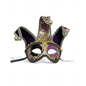 Máscara veneciana baroca de bufón para mujeres - Accesorio de disfraz de carnaval de terciopelo rojo y dorado para el festival de Venecia Mardi Gras y fiestas de máscaras