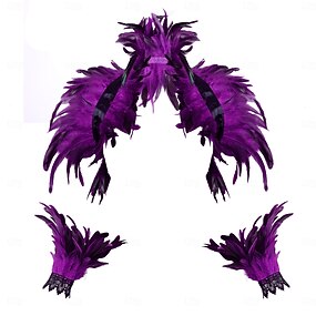 Accesorios de Samba del Carnaval 2026 Carnaval de Río Guantes de Encaje de Plumas Moradas para Mujeres Mangas Góticas de Burlesque con Bordado Negro | Costo de Performance en Festival de Brasil