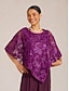 Mujer Sayo Blusa Poncho Tops de encaje Lentejuelas Encaje Asimétrico Floral Elegante Media Manga Manga Murciélago Cuello Barco Tops regulares Diario Invitado a la boda Noche Morado Verano Primavera
