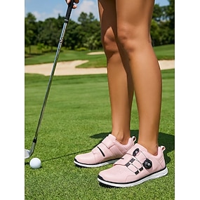 Zapatos de golf rosas para mujer con cierre de dial, suela acolchada sin clavos para golfistas femeninas, campo de prácticas, juego de calle &entrenamiento diario