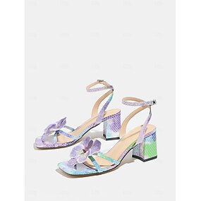 Sandalias de tacón con tira al tobillo en color lavanda para mujer con lazo extragrande: elegantes y chic para bodas, fiestas y ocasiones especiales.