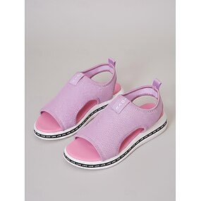 Sandalias deportivas moradas para niña con detalles de corazón: calzado antideslizante para exteriores, ideal para el patio de recreo y la vuelta al cole.