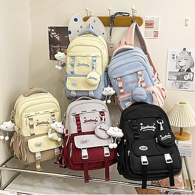 linda mochila de bolsillo transparente impermeable con juguete de peluche: mochila de regreso a la escuela con múltiples bolsillos de gran capacidad para niñas en varios colores