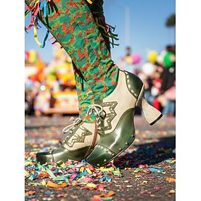 Botas de cuero atadas con cordones en verde y beige para mujeres Mardi Gras con detalles de tachuelas – estilo audaz de carnaval perfectas para desfiles festividades y celebraciones