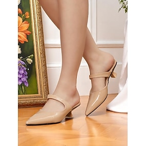 Zapatos de salón beige de charol con punta puntiaguda para mujer: cómodos zapatos de tacón pequeño para uso diario