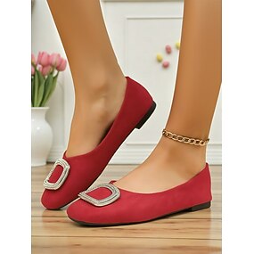 Bailarinas con hebilla de diamantes de imitación rojos para mujer: elegantes zapatos sin cordones con punta redonda para uso oficial, diario y fiestas de té por la tarde.