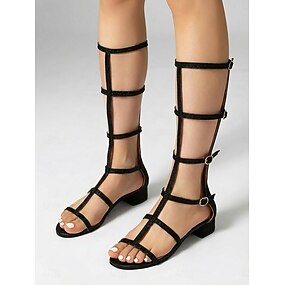 Sandalias gladiadoras hasta la rodilla para mujer: zapatos de tacón bajo estilo romano con tiras, elegantes sandalias de verano para vacaciones al aire libre, resorts y viajes.