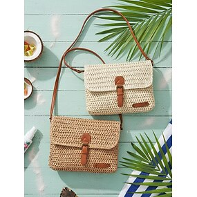 Bolso bandolera bohemio de paja para mujer, bolso de hombro tejido en color marfil y caqui con correa ajustable para vacaciones en la playa, viajes a resorts, atuendos casuales de verano y uso diario.