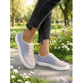 Zapatillas Flyknit transpirables con cordones rosas para mujer: zapatos casuales ligeros para caminar, viajar, al aire libre y en el parque. &uso diario