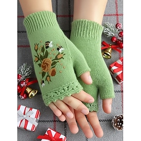 Guantes bordados navideños para mujer: diseño floral con abejas, material de hilo de algodón, disponible en varios colores, perfectos para las vacaciones de invierno y ocasiones festivas.
