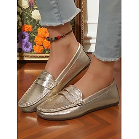 Mocasines de Penny Metálicos Dorados para Mujer Suaves Zapatillas Slip-On de Piso Casual con Cuero Sintético Texturizado para Conjuntos Elegantes y Salidas Diarias
