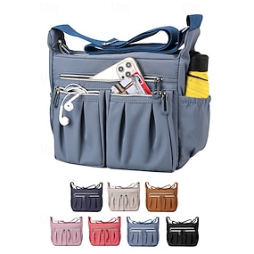 Bolso bandolera multibolsillos para mujer: ligero, impermeable, de nailon, con cierre de cremallera para viajes, trabajo y uso diario, color rosa, morado y negro.