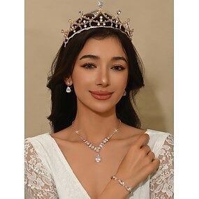 Conjunto de joyas nupciales de cristal para mujer: tiara de 3 piezas y collar con forma de lágrima. &Pulsera estilo princesa con brillantes diamantes de imitación para novias. &ceremonias de boda