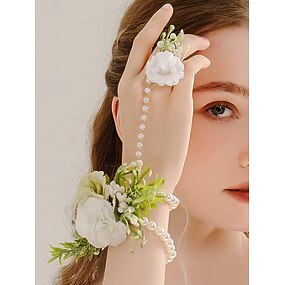 Conjunto de joyas para mano y muñeca con flores blancas y perlas: elegante accesorio de novia para bodas y ocasiones especiales