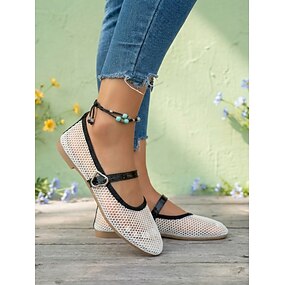Bailarinas Mary Jane de malla beige para mujer: zapatos cómodos, transpirables y ligeros con correa ajustable y suela antideslizante, zapatos casuales para caminar, viajar, ir al jardín y para uso