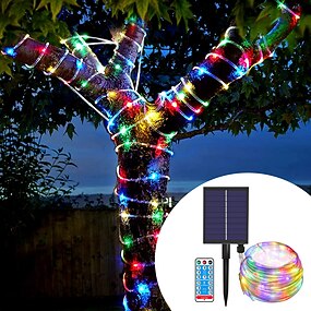 10m Cuerdas de Luces 100 LED Blanco Cálido Blanco Multicolor Luces de cadena creativas Fiesta Al Aire Libre Impermeable Funciona con Energía Solar