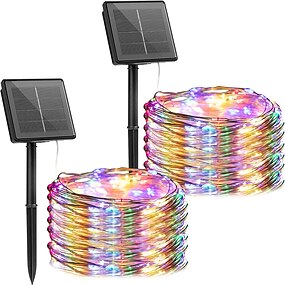 Paquete de 2 luces de cadena solares luces de navidad decoración al aire libre 12m 120leds luces de alambre de cobre de hadas con 8 modos decoración impermeable luces de alambre de cobre para patio