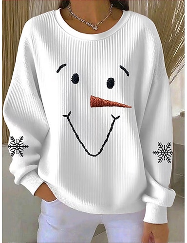 Navidad Sudadera de Mujer Muñeco de Nieve Copo de Nieve Pulóver Gráfico Casual de Manga Larga Cuello Redondo Tops Regulares Calle Diaria Casual Piezas Rojo Azul Verde Otoño Invierno
