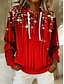 Navidad Camiseta de Mujer Gráfica Vintage Estilo Casual de Manga Larga Cuello en V Top Regular Diario Impresión Roja Primavera Otoño Invierno
