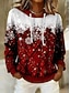 Navidad Camiseta de Mujer Gráfica Vintage Moda Elegante de Manga Larga Cuello Redondo Tops Regulares Impresión Diaria Fin de Semana Roja Azul Caqui Otoño Invierno