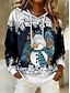 Sudadera de tirador para mujeres Navidad Sudaderas con capucha Gráficas Moda Casual Manga larga Cuello redondo Cuello redondo Tops Regulares Ropa de calle Diaria Casual Impresión Blanca Roja Azul