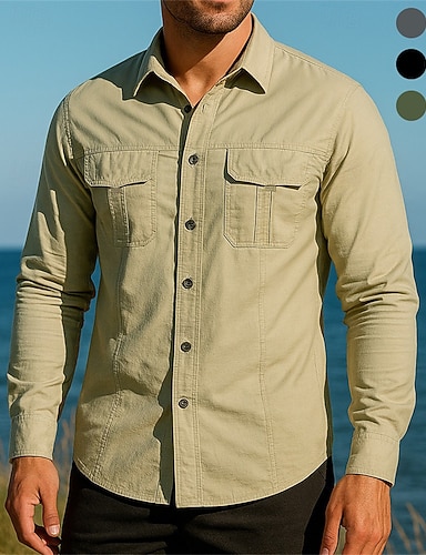 Hombre Camisa para senderismo Camisa militar Camisa impermeable Manga Larga Cuello Vuelto Camisas Camiseta Al aire libre Transpirable Primavera Otoño Nailon Negro Verde Ejército Caqui Caza Pesca