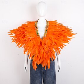 Carnaval 2026 Accesorios de Samba del Carnaval de Río Capa Chal de plumas rojas para mujer con lazo de cinta disfraz de actuación del festival de Brasil