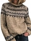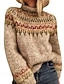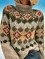 Mujer Pulóveres Vacaciones Vintage Diario Geométrico Cachemir Estriado Cuello Alto De Punto Estampado Manga Larga Tops regulares Tejer Exterior Diario Fin de semana Naranja Marrón Otoño Invierno