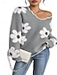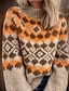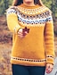Mujer Suéter navideño Fair Isle Pulóveres Suéter Fair Isle Ropa de calle Casual Floral Cuello Barco De Punto Estampado Manga Larga Tops regulares Tejer Diario Festivos Noche Amarillo Naranja Otoño