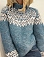 Mujer Pulóveres Vacaciones Vintage Diario Geométrico Cachemir Estriado Cuello Alto De Punto Estampado Manga Larga Tops regulares Tejer Exterior Diario Fin de semana Rojo Azul Piscina Otoño Invierno