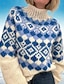 Mujer Pulóveres Pull-over Vintage Moda Ropa de calle Geométrico Cuello Alto De Punto Estampado Manga Larga Tops regulares Tejer Diario Festivos Noche Azul Piscina Naranja Otoño Invierno