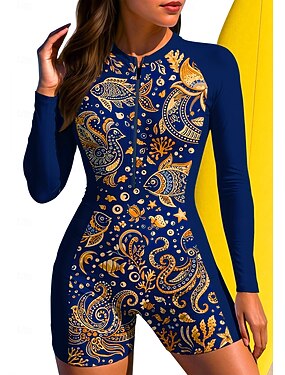 Mujer Regular Camiseta Protección Solar Surf Traje de baño Boyleg Floral Tropical Cerrar Acolchado extraíble Cremallera delantera Protección solar UV UPF50+ Utra ligero (UL) Manga Larga Bañadores