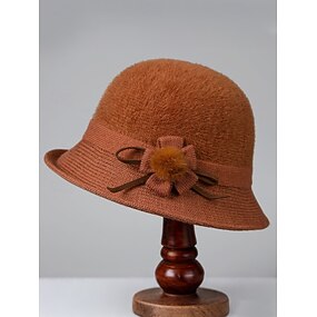 Sombrero de fieltro de lana para mujer con decoración de flores de pompón de felpa, disponible en varios colores, perfecto para invierno y ropa informal.