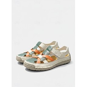 Sandalias casuales para caminar con bloques de color para mujer: sandalias planas suaves y acolchadas con diseño de corte transpirable para mujer, uso diario, viajes, caminatas al aire libre, jardín