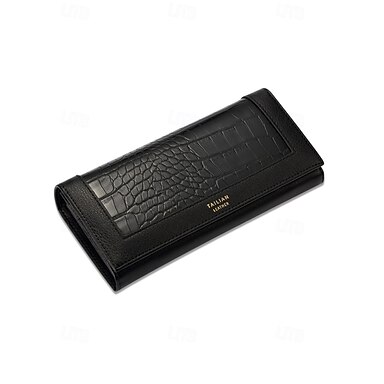 Cartera larga de piel sintética con estampado de cocodrilo para mujer con múltiples ranuras para tarjetas, elegante bolso de mano para uso diario y ocasiones formales.