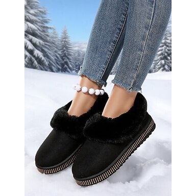 Botas de nieve de piel sintética esponjosa para mujer, botines cálidos de invierno para interior &Ropa para actividades al aire libre, cómodos zapatos de felpa para Navidad, viajes de esquí &clima