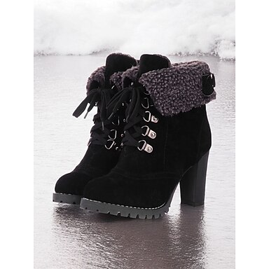 Botas de invierno de tacón alto de ante sintético para mujer: botas con cordones y forro de piel con tacón grueso para la nieve y el frío