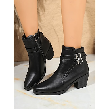 Botines marrones con hebilla y tira para mujer: botines estilo western con tacón de bloque y cremallera lateral para looks casuales y campestres de otoño e invierno.