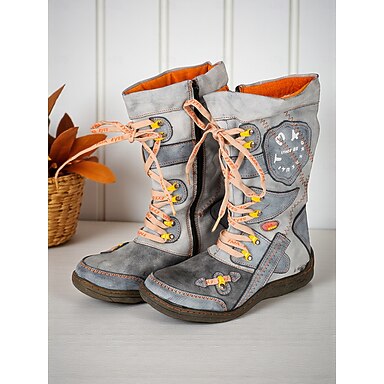 Mujer Botas Botas holgadas Exterior Diario Separar Botines Botines Hebilla Tacón Cuadrado Dedo redondo Bohemia Casual Cuero Sintético Sin Cordones Negro Beige Gris