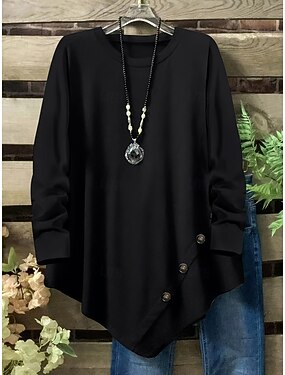 Camiseta de mujer de manga larga talla grande diaria casual de manga larga negra primavera otoño preoto