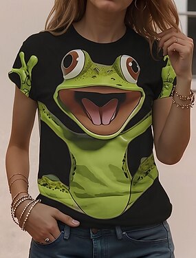 Mujer Camiseta Estampado Animal Casual Manga Corta Escote Redondo Tops regulares Diario Negro Verano